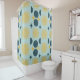 Beautiful Boho Celestial Sun Moon Blue Patterned Shower Curtain modern geometric design with a boho chic feel. Buy Today!