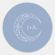 Seal your celestial theme with the Boho Celestial Wedding Sticker. Against a dusty blue backdrop, the crescent moon and stars, paired with the stylishly simple customisable initials of the couple, infuse a sense of magic. Elegant leaves delicately incorporated become an enchanting emblem