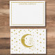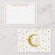Boho style note cards featuring a gold whimsical design. Personalize the front with your name. Flip over the back to admire a beautiful celestial woman sitting on a crescent moon surrounded by stars. An elegant birthday or anniversary present for anyone who loves astronomy or boho inspired items.