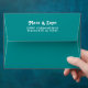 Chic solid colour teal, 70's style pattern lined envelope with return address on back flap.