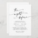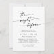This boho chic black and white rehearsal dinner invitation is perfect for a minimalist night before wedding rehearsal. The black and white modern bohemian design features simple rustic calligraphy with a unique yet classic style. Perfect for any season: spring, summer, fall autumn or winter.