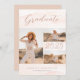 Our graduation invitation features three of your favourite photos on the front, beautifully arranged with a blush pink watercolor background. The word "graduate" is elegantly written in script font, adding a touch of sophistication to the design.