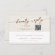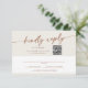 This boho chic bohemian cream mail in and QR code rsvp card is perfect for a minimalist wedding. The neutral terracotta burnt orange and cream modern bohemian design features simple rustic calligraphy with a unique yet classic style.