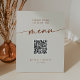 This boho chic bohemian cream QR code wedding menu pedestal sign is perfect for a minimalist wedding. The neutral terracotta burnt orange and cream modern bohemian design features simple rustic calligraphy with a unique yet classic style.