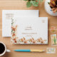 Complete your wedding stationery set with our Boho Botanical Elegance Wedding Envelope. This beautifully designed envelope embraces the serene beauty of nature, adding sophistication and warmth to your special day. Featuring a captivating blend of rich browns, soft beiges, creamy whites, and subtle sage greens, it evokes a sense of natural beauty and tranquillity. Elegant white and deep brown roses symbolise purity and strength, while detailed illustrations of pampas grass, ferns, and graceful white calla lilies add texture and depth. The asymmetric layout with dense clusters of botanical elements creates a dynamic flow and visual interest, making it perfect for modern, rustic, and nature-inspired wedding themes. Printed on high-quality materials, this envelope ensures your invitations arrive in style. Order now to bring a touch of boho-chic elegance to your wedding correspondence.