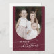 Boho Chic Burgundy Photo Boho Family Christmas Holiday Card.