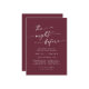 This boho chic burgundy red rehearsal dinner invitation is perfect for a minimalist night before wedding rehearsal. The dark maroon wine red modern bohemian design features simple rustic calligraphy with a unique yet classic style.