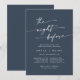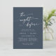 This boho chic dark navy blue rehearsal dinner invitation is perfect for a minimalist night before wedding rehearsal. The muted and moody neutral dark blue modern bohemian design features simple rustic calligraphy with a unique yet classic style.