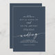 This boho chic dark navy blue wedding invitation is perfect for a minimalist wedding. The muted and moody neutral dark blue modern bohemian design features simple rustic calligraphy with a unique yet classic style.