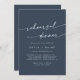 This boho chic dark navy blue wedding rehearsal dinner invitation is perfect for a minimalist night before wedding rehearsal. The muted and moody neutral dark blue modern bohemian design features simple rustic calligraphy with a unique yet classic style.
