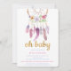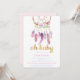 This adorable boho-chic dream catcher invite is perfect for the baby shower you are planning! The design features soft pastel flowers and feathers and the text pops out with the delicate and perfectly matched blue/grey and pink colours.
