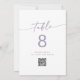 These boho chic dusty purple QR code table numbers are perfect for a minimalist wedding. The light lavender purple and white modern bohemian design features simple rustic calligraphy with a unique yet classic style.