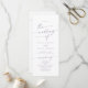 This boho chic dusty purple tea length wedding program is perfect for a minimalist wedding ceremony. The light lavender purple and white modern bohemian design features simple rustic calligraphy with a unique yet classic style.