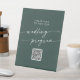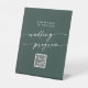 Boho Chic Emerald Green QR Code Wedding Program Pedestal Sign
