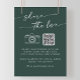 This boho chic emerald green share the love QR code sign is perfect for a minimalist wedding. The dark and moody hunter forest green modern bohemian design features simple rustic calligraphy with a unique yet classic style.