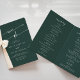 This boho chic emerald green we do folded wedding program is perfect for a minimalist wedding ceremony. The dark and moody hunter forest green modern bohemian design features simple rustic calligraphy with a unique yet classic style.