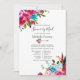 Boho chic hot-pink and blue watercolor floral long distance baby or bridal shower by mail invitation.