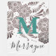 Grey and white bohemian chic floral pattern compliments the black and teal monogram and chalkboard name.