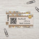 Business card featuring a boho chic design with metallic gold lace on canvas with a glam background. Several templates are added: a QR code, logo and social media. You can customise those and replace the social media icons with your custom icons. On the back is also space for your own photo. A modern professional business card for anyone creating handmade artisan products or gifts.