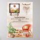 Bohemian home decor scene featuring a mid-century modern armchair with pillows and your favourite slippers, a few plants and a rug with a picture on the wall and a macrame hanging. This boho chic design includes the definition of bohemian. Composite design by Holiday Hearts Designs.