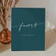 This boho chic modern teal blue wedding favours sign is perfect for a minimalist wedding. The bold dark turquoise jewel tone modern bohemian design features simple rustic calligraphy with a unique yet classic style.