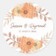 Boho Chic Orange Floral Wedding Classic Round Sticker