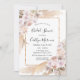Elegant bohemian tropical dried palm leaves, pampas grass and white orchids and roses bridal shower invitations.