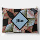 A beautiful Boho Chic accessory or makeup pouch designed with the photographic images of embroidered floral pillows in a patchwork pattern. It's a beautiful illusion that is both traditional and boho chic. Deep, rich earthy multi colour patterns on each side accented with blue and black. Personalise with a Name and/or Initials on each or either side. This image is original photography by JLW_PHOTOGRAPHY.