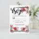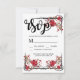 Beautiful Bohemian red floral roses design. The relaxed and almost casual vibe of Boho is expressed perfectly as the roses intertwine with the corners. The flourishes have a bit of a Victorian feel. RSVP is written in a large open handwritten script. The wedding response details are written in modern and simple type. The back of the card is a deep red. This makes it perfect for a fall wedding. You can lighten up the template by changing the colour to white, black or anything in between!