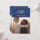 These boho chic royal blue photo table numbers are perfect for a minimalist wedding. The bold dark blue modern bohemian design features simple rustic calligraphy with a unique yet classic style.