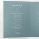 This boho chic seafoam teal monogram wedding tri-fold program is perfect for a minimalist wedding. The colourful blue green modern bohemian design features simple rustic calligraphy with a unique yet classic style reminiscent of the beach, ocean and summer seaside.