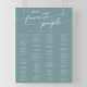 This boho chic seafoam teal printable seating chart poster sign is perfect for a minimalist wedding. The colourful blue green modern bohemian design features simple rustic calligraphy with a unique yet classic style reminiscent of the beach, ocean and summer seaside.