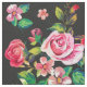 This elegant, girly, boho chic, vibrant colourful blossom garden roses and spring flowers, watercolor paint on a dark grey background, is perfect for everyday wear, home decor or special occasions. A romantic, unique, stylish, vibrant, happy, young, modern, pretty, vintage collection of roses, flowers, leaves, in pink, blue, teal, yellow, purple, black, grey, white illustration image.