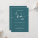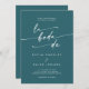 This boho chic teal blue QR code Spanish wedding invitation is perfect for a minimalist wedding. The bold dark turquoise jewel tone modern bohemian design features simple rustic calligraphy with a unique yet classic style.