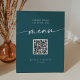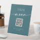Boho Chic Teal Blue QR Code Wedding Menu Pedestal Sign
