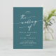 This boho chic teal blue the wedding of invitation is perfect for a minimalist wedding. The bold dark turquoise jewel tone modern bohemian design features simple rustic calligraphy with a unique yet classic style.