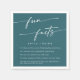 These boho chic teal blue wedding fun fact napkins are perfect for a minimalist wedding. The bold dark turquoise jewel tone modern bohemian design features simple rustic calligraphy with a unique yet classic style.