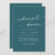 This boho chic teal blue wedding rehearsal dinner invitation is perfect for a minimalist night before wedding rehearsal. The bold dark turquoise jewel tone modern bohemian design features simple rustic calligraphy with a unique yet classic style.