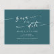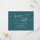 This boho chic teal blue wedding save the date invitation postcard is perfect for a minimalist wedding. The bold dark turquoise jewel tone modern bohemian design features simple rustic calligraphy with a unique yet classic style.