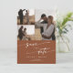 This boho chic terracotta multi photo QR code save the date card is perfect for a minimalist wedding. The earthy burnt orange modern bohemian design features simple rustic calligraphy with a unique yet classic style.