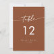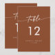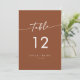 These boho chic terracotta wedding table numbers are perfect for a minimalist wedding. The earthy burnt orange modern bohemian design features simple rustic calligraphy with a unique yet classic style.