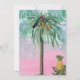 Pink, blue and a blend of tropical colours eliciting the image of a watercolor pink beach fading into a watercolor ocean and sky surrounded by tropical leaves. The back is adorned with a vintage palm tree and pineapple bush to complete the look. A gold tone edged panel on front overlays the tropical background to frame your "Aloha" Birthday Party celebration details. Composite design by Holiday Hearts Designs (rights reserved).
