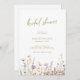 Celebrate your bride-to-be with this enchanting boho chic bridal shower invitation featuring whimsical wildflowers in a beautiful colour palette. Personalizable gold script lettering adds a touch of elegance (bride's name can be added!).