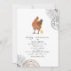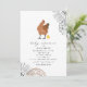 Illustration of mama hen and baby chick with boho inspired designs at corners. Opposite side is teal watercolor.