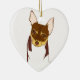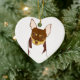 Heart shaped porcelain ornament. Created from a hand/mouse drawn digitally painted portrait of the real "Demi" the Chihuahua. Get a portrait of your pet at http://www.bohopets.com. 50% of profits are donated to animal charities. ©Kristin Dewey All rights reserved www.bohopets.com