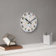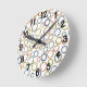 This wall clock has a Boho design of overlapping circles on retro shades of green, brown, blue and gray.