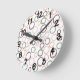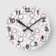 This wall clock has a Boho design of overlapping circles on retro pink, purple, moss green, and caramel orange.