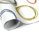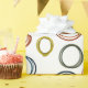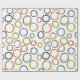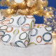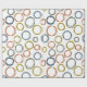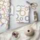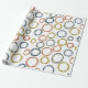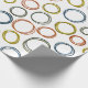 This wrapping paper has a Boho design of overlapping circles on retro shades of green, brown, blue and grey.