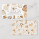 This boho clothesline gender-neutral baby shower books for baby/please bring a book/book request enclosure card features baby clothes such as a mobile with a bear, romper, pants, stuffed bear/animal, jacket, boots, diaper, bib, bottle and pyramid toy. The reverse side features a light beige/tan background with baby toy patterns. Personalise it for your needs. You can find matching products at my store.