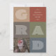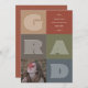 This modern graduation announcement features a striking grid design with chunky oversized lettering and earthy boho tones. Personalise with your details and a single photo.